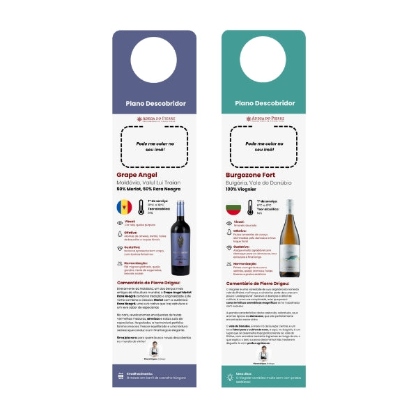 Cada vinho vem acompanhado de uma ficha técnica explicativa, pra você conhecer melhor o que está bebendo.