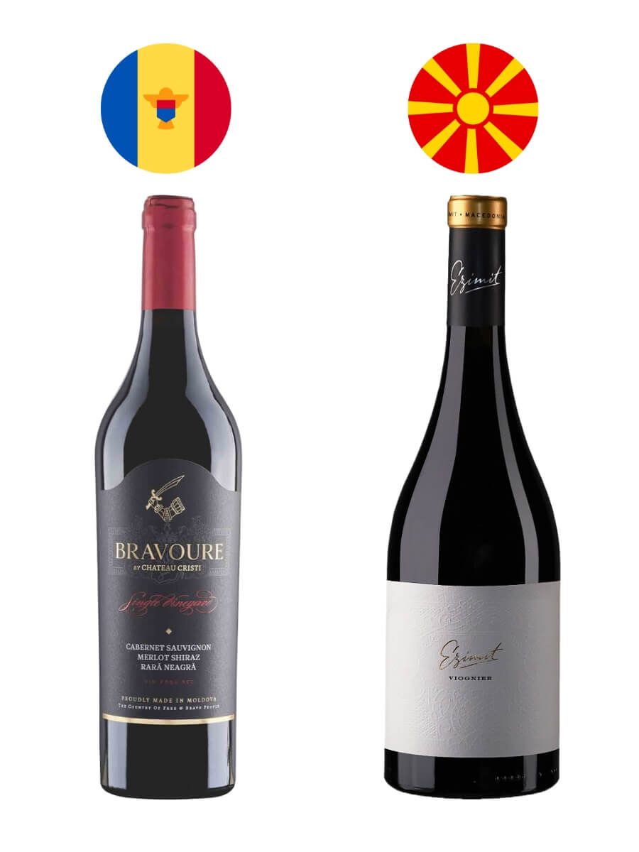 Um blend moldavo que lembra um ótimo Bordeaux e um incrível Viognier da Macedônia do Norte, cheio de aromas de damasco e frutas secas.