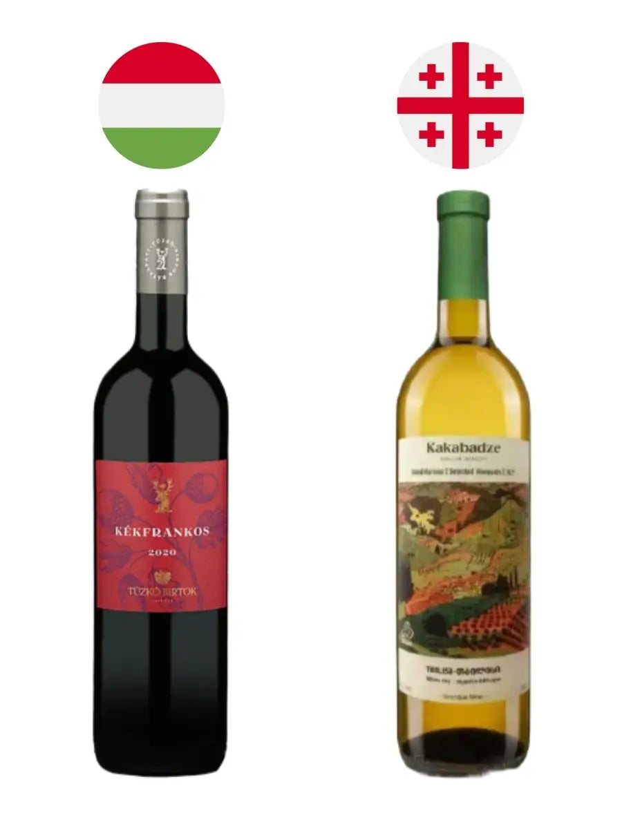 Dois vinhos de uva única neste mês de julho: um húngaro 100% Kékfrankos, variedade local intensa e encorpada da Hungria, e um georgiano 100% Rkatsiteli, que dá origem a vinhos brancos secos e minerais.