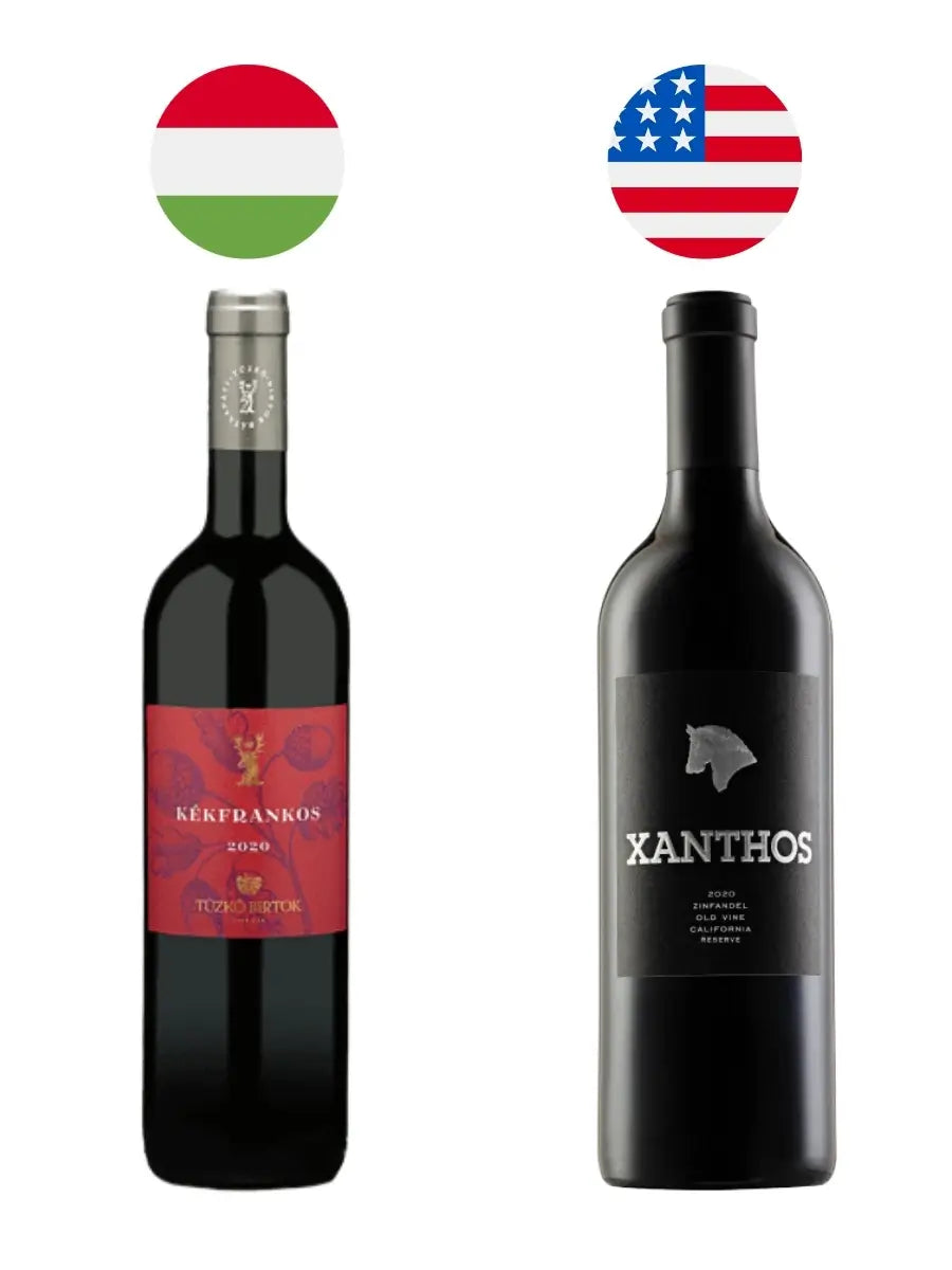 Um vinho húngaro 100% Kékfrankos, uva local intensa e encorpada, e um norte-americano 100% Zinfandel de vinhas velhas, envelhecido por 12 meses em barrica, um vinho complexo, elegante e com um final de boca marcante.